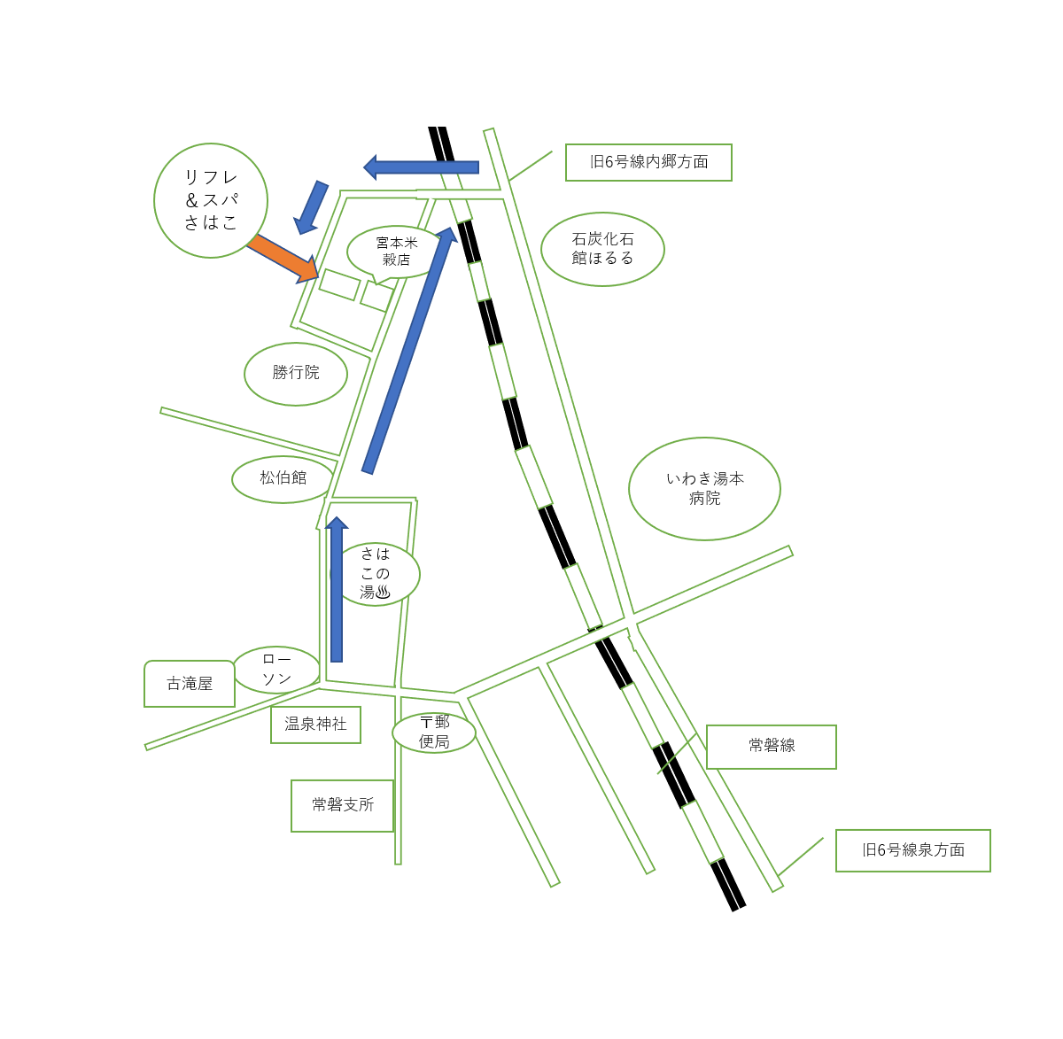 | 電車の場合 | 常磐線湯本駅より徒歩15分。温泉神社からさはこの湯方面へ、そのまま通り過ぎ左手に見える宮本米穀店裏になります。上町踏切踏切から入り突当りを左へ向かって100mほど進むと平屋の白い建物と看板が御座います。道が狭くご迷惑をおかけしますが、お気をつけてお越しください。 |